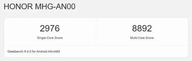 具体参数规格方面,以往的爆料显示,荣耀 Magic V5 折叠屏手机代号为 Maybach,搭载4.47GHz 满血骁龙 8 至尊领先版处理器,内置5950mAh/6100mAh±新硅电池,支持66W有线充电。 提供绒黑、暖白、曙光金、丝路敦煌配色,配备7.95±英寸2K+LTPO显示屏,支持北斗卫星短信、侧边指纹,后置升级版5000万像素摄像头。 目前该机的跑分已经出现在Geekbench 6数据库,型号MHG-AN00,成绩是单核2976分,多核8892分。